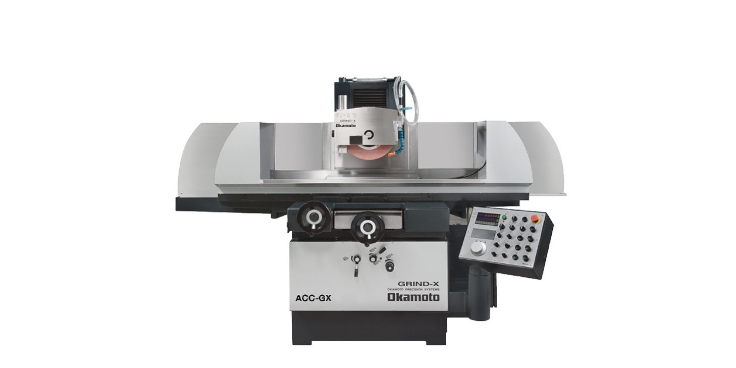 Rectificadora de superficies planas de alta precisión con ciclos automáticos de rectificado mediante mando por microprocesador tipo GX, para el accionamiento mediante servomotor del eje vertical y sistema hidráulico para el movimiento longitudinal y transversal de la mesa, para rectificado basto, fino y pasadas sin alimentación en modo automático de una superficie en un solo ajuste. Avance y retroceso rápido y auto retorno del cabezal del esmeril a la posición inicial.